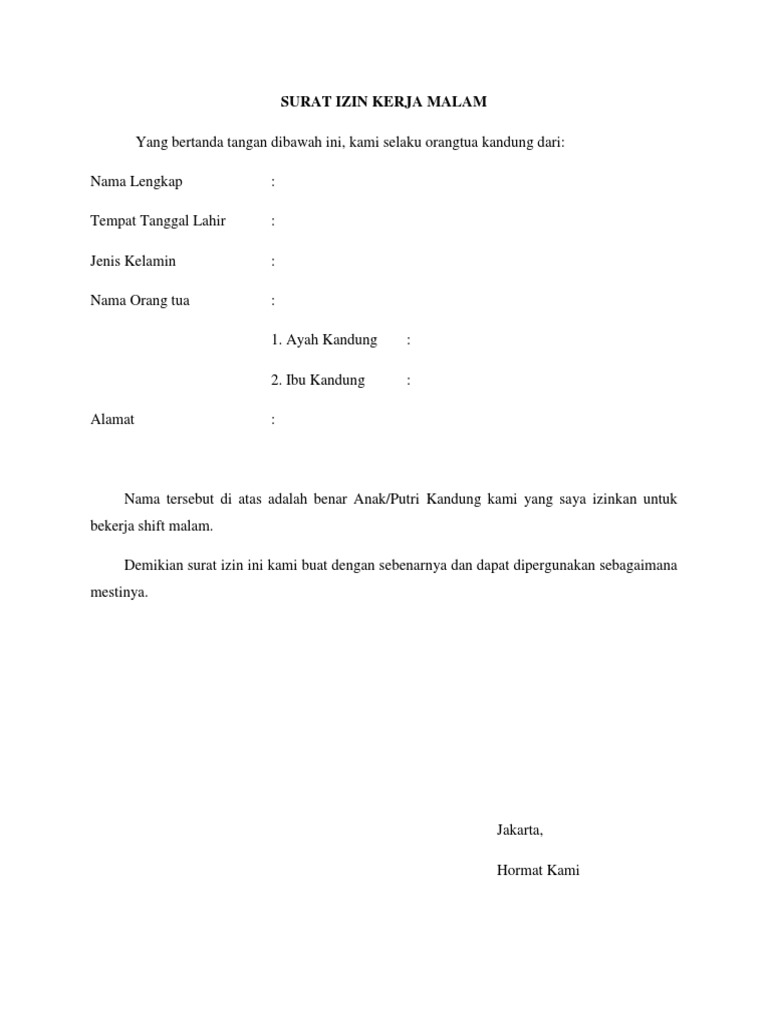 6 contoh surat izin orang tua. Untuk mendukung hal tersebut, kuliah lagi jadi salah satu opsi. Contoh surat izin tidak masuk kuliah. Bekerja pada shift malam tentu bukanlah hal yang mudah bagi banyak orang. Contoh surat izin kerja malam pt epson suratmenyuratnet. Beserta cara menulis surat izin yang baik dan benar. 1.2 contoh surat izin orang tua untuk melamar kerja. Doc contoh surat permohonan izin kegiatan surat ayu sukma. Contoh surat keterangan kerja shift bahkan walaupun anda sanggup dan setuju untuk bekerja pada shift malam mungkin saja orang tua tidak akan setuju. 1.4 contoh surat persetujuan orang tua untuk menikah. Contoh surat izin tidak masuk kerja pns instansi pemerintahan. The collection that consisting of chosen picture and the best amongst others. Ada banyak kegiatan yang hanya boleh digelar jika sudah mendapatkan izin dari pihak yang berwenang.